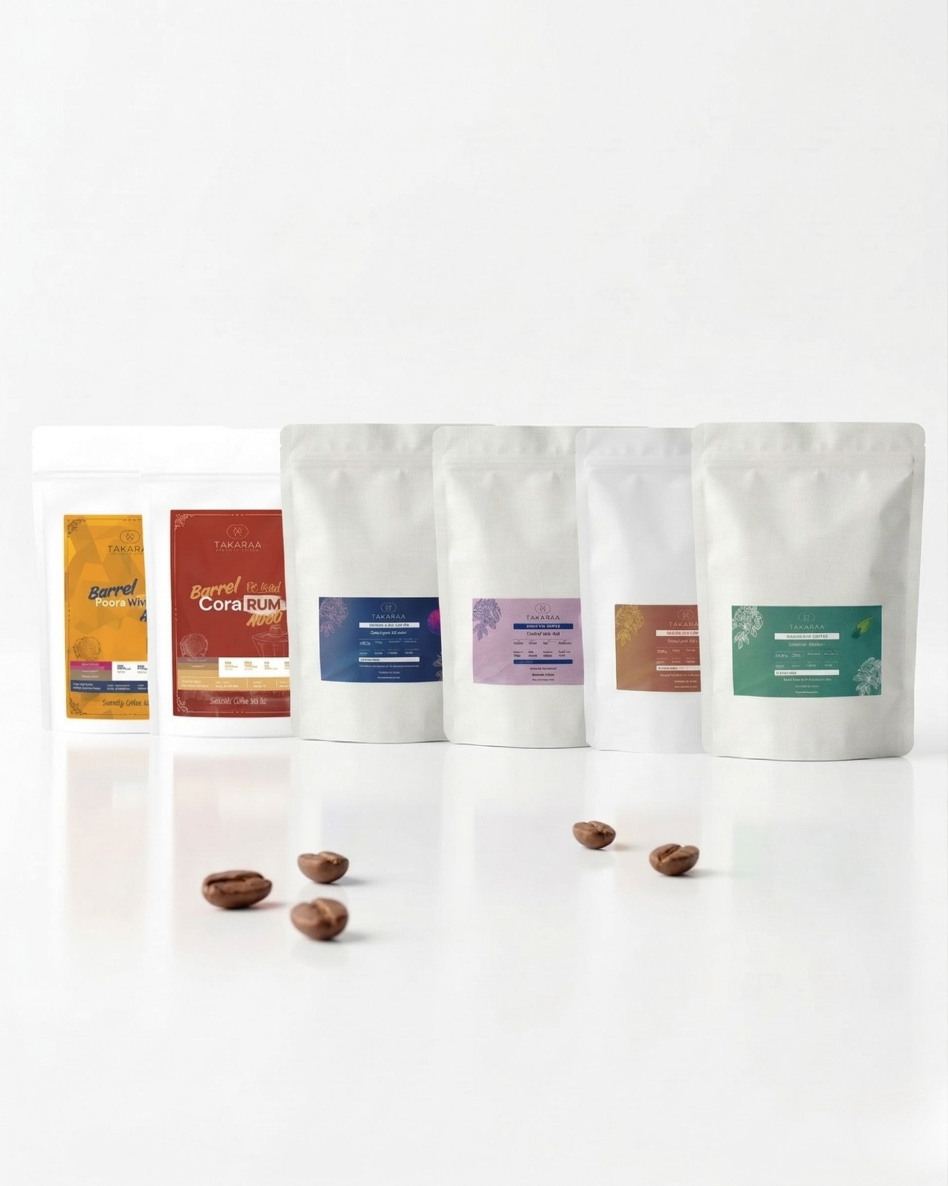 Our signature blend showcases the best of Indian coffee heritage. Sourced from the finest farms in the Western Ghats, roasted to perfection, and delivered fresh. Experience the rich, complex flavors that have made Takaraa the choice of 100+ cafés across India.